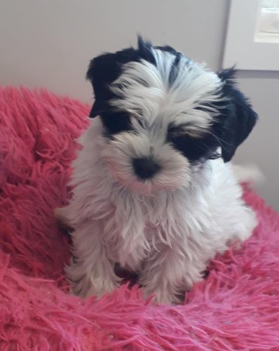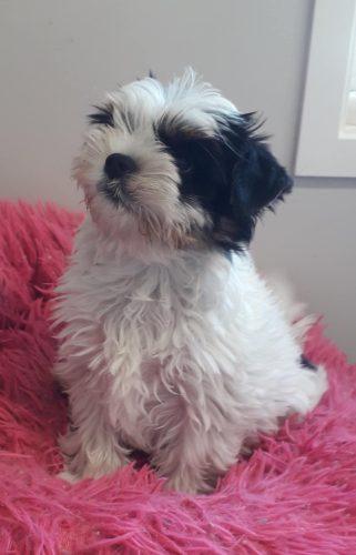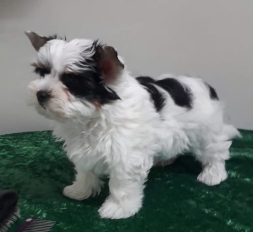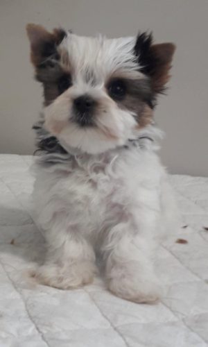 EMMA, is a very cute girl, she is a bit smaller than her brother but not in personally. Her ears are up and down. She is $3000.